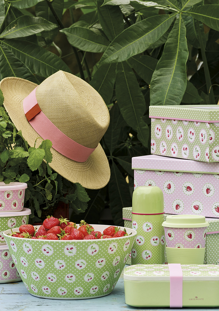 Самые вкусные летние воспоминания связаны именно с клубникой! Выполненная в ярких оттенках розового и красного и оттененная спокойным салатовым, ягодная коллекция Greengate Strawberry буквально пропитана духом лета. Каждая коллекция повторяет элементы и формы коллекций прошлых сезонов. Так что смело руководствуйтесь правилом Mix and Match сочетай и смешивай и создавайте свои уникальные композиции.